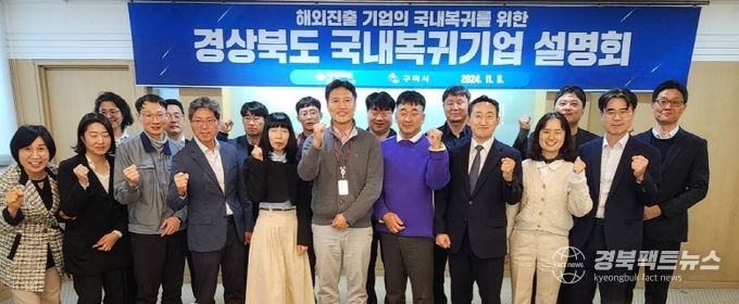 경북팩트뉴스 김영란 기자 | 경상북도는 8일 구미전자정보기술원에서 해외에 사업장을 둔 구미시에 있는 기업들을 대상으로 국내복귀기업 설명회를 개최했다.