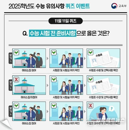 경북팩트뉴스 이경원 기자 | Q. 수능 시험 전 준비사항으로 옳은 것은?
