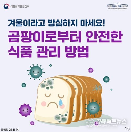 경북팩트뉴스 이경원 기자 | 날씨가 덥고 습한 여름철은 음식이 빨리 상해 보관,관리에 신경을 많이 쓰지만, 상대적으로 겨울이 되면 관리에 소홀해질 수 있어요. 하지만 식품 위생은 계절을 가리지 않아요. 계절에 관계없이 곰팡이로부터 우리의 건강과 먹거리를 지키려면 다음 주의사항을 확인해주세요!