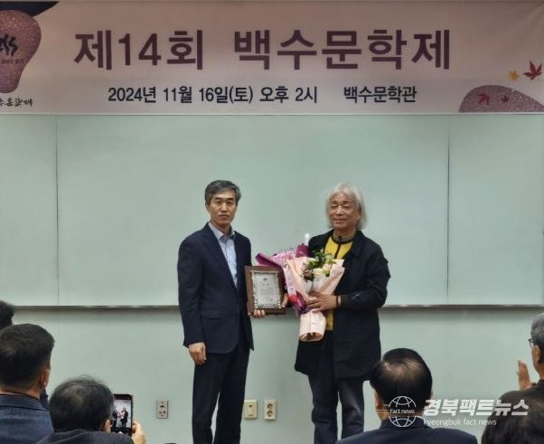 경북팩트뉴스 이경원 기자 | 김천시는 지난 16일 김천시 백수문학관에서 '제14회 백수문학제' 시상식을 개최했다.