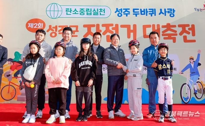 경북팩트뉴스 이경원 기자 | 성주군은 11월 16일 이천변주차장에서 자전거라이딩을 즐기는 지역주민과 동호인 등 200여 명이 모여 탄소중립실천을 위한 ‘성주군 자전거 대축전’행사를 개최했다.