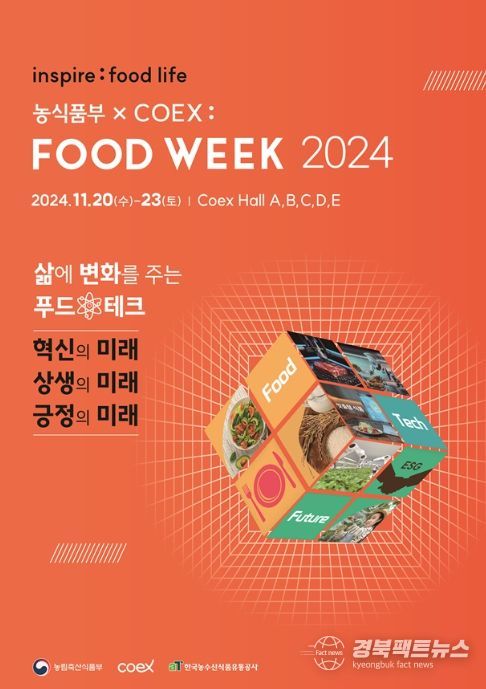 경북팩트뉴스 김영란 기자 | 농림축산식품부와 코엑스는 11월 20일부터 23일까지 4일간 코엑스(서울 삼성동)에서'푸드 위크(FOOD WEEK) 2024'를 개최한다.