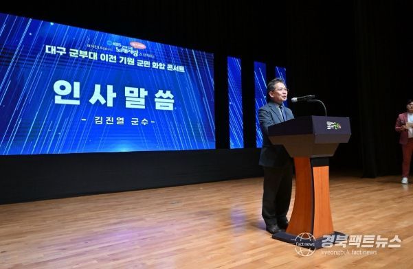 경북팩트뉴스 이경원 기자 | 군위군은 지난 21일 삼국유사교육문화회관에서 김진열 군위군수를 비롯한 초청인사, 공무원, 주민, 관련 단체 등 500여 명이 참석한 가운데 대구시 군부대 군위군 이전을 기원하는 군민 화합 콘서트를 개최 했다.