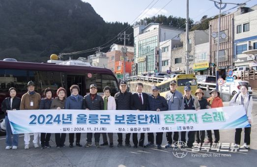 경북팩트뉴스 이경원 기자 | 울릉군은 지난 21일 국가를 위해 헌신하신 국가유공자들의 공로를 예우하고, 관내 보훈단체 회원 간 친목을 도모하기 위하여 '2024년 울릉군 보훈단체 전적지 순례'를 실시했다.