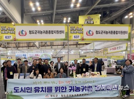 청도군은 다양한 귀농·귀촌 지원사업을 알리기 위해 『귀농귀촌 청년창업 박람회』, 『성공귀농 행복귀촌 박람회』, 『A FARM SHOW 창농귀농 고향사랑 박람회』 등에 참석하여 청도군 홍보관을 운영했으며, 이번 부산 박람회에서도 6개의 홍보부스를 운영하면서 청도군의 매력을 널리 알렸다.