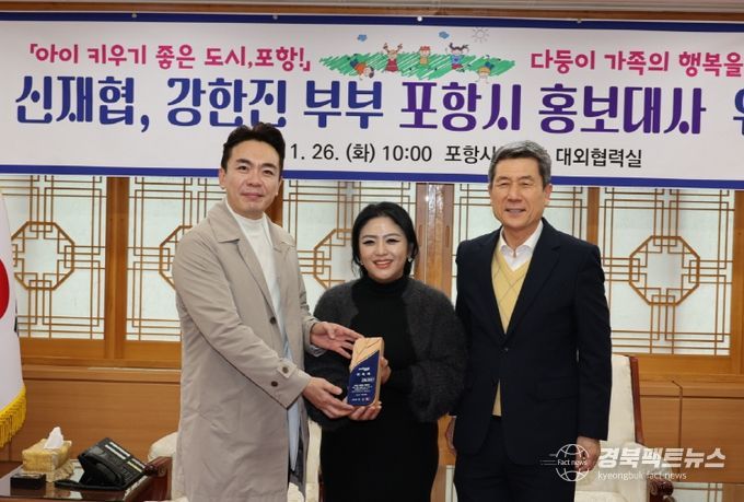 경북팩트뉴스 김영란 기자 | 포항시는 26일 지역의 5남매 자녀를 둔 신재협, 강한진 부부를 ‘포항시 홍보대사’로 위촉했다고 밝혔다.