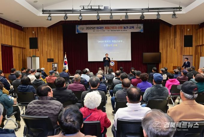 경북팩트뉴스 김영란 기자 | 봉화군은 지난 25일 농업기술센터에서 내년 외국인 계절근로자 신청 농가들을 대상으로 2025년 외국인 계절근로자 프로그램 운영 시 유의 사항 등을 관한 교육을 실시했다.