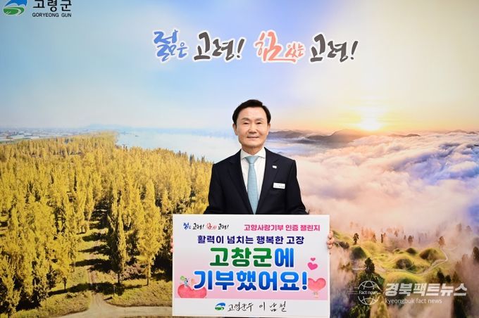 경북팩트뉴스 김영란 기자 | 이남철 고령군수가 지난 25일 ‘고향사랑기부 인증 챌린지’에 동참해 작년에 이어 2년 연속 고향사랑기부제 활성화와 기부문화 확산에 힘을 보탰다.