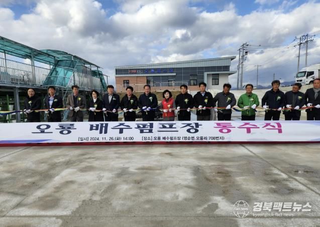 경북팩트뉴스 김영란 기자 | 달지지구 농업인들의 염원과 희망이 담긴 오룡 배수펌프장이 시민들에게 모습을 선보였다. 11월 26일 문경시는 오룡 배수펌프장 준공식에 앞서 풍년을 기원하는 행사인 통수식을 진행하였다.