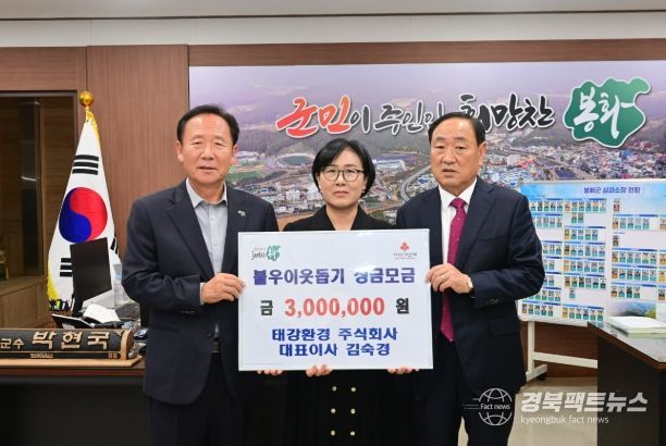 박현국 봉화군수는 “봉화군 취약계층을 위해 나눔에 동참해 주신 태강환경 주식회사에 깊은 감사를 드리며, 전달받은 성금을 도움의 손길이 필요한 이웃에게 소중히 전달하겠다.”라고 전했다.