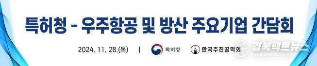 경북팩트뉴스 김영란 기자 | 특허청은 11월 28일 16시 30분, 한국추진공학회 추계학술대회장(파라다이스 호텔 부산, 부산 해운대구)에서 우주항공 및 방산 분야 11개 기업과 현장 간담회를 개최했다고 밝혔다.