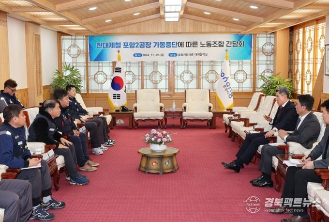 경북팩트뉴스 김영란 기자 | 포항시는 29일 시청 대외협력실에서 현대제철 2공장 가동 중단과 관련해 노동조합 임원들과 간담회를 가졌다.