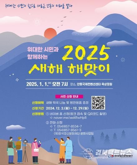 행사를 주관하는 한국정신문화재단 관계자는 해맞이 행사의 안전에 최선을 다하겠다고 전했으며, 안동시 관계자는 “2025년 새해에는 시민 모두가 새로운 기운과 함께 소망하는 모든 것들이 이루어지길 바라며, 해맞이 행사 동참으로 특별한 추억을 만드시길 바란다”고 밝혔다.