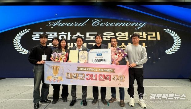 경북팩트뉴스 김영란 기자 | 의성군은 환경부 주관 2024년도 공공하수도 운영·관리 실태평가에서 전국‘우수기관’으로 선정되어 2022년도 이후 3년연속 수상했다고 밝혔다.