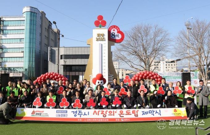 경북팩트뉴스 김영란 기자 | 경주시가 연말연시 나눔 문화 확산을 위해 2일 오전 경주문화관 1918 광장에서 ‘희망2025 나눔캠페인’ 사랑의 온도탑 제막식을 개최했다.