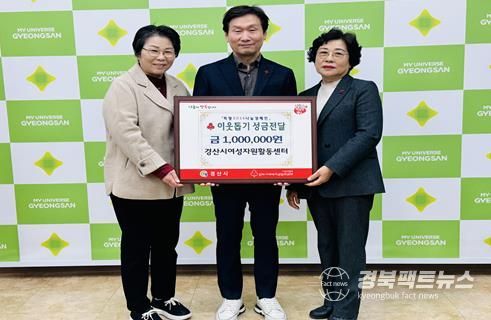 경북팩트뉴스 김영란 기자 | 경산시여성자원활동센터는 3일 ‘베푸리 나눔장터’에서 발생한 수익금 100만 원을 경산시에 이웃돕기 성금으로 기탁했다고 밝혔다.