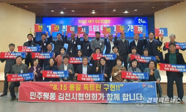경북팩트뉴스 김영란 기자 | 민주평화통일자문회의 김천시협의회는 12월 2일 월요일 14시, 김천시청 강당에서 자문위원 35명이 참석한 가운데‘통일환경 변화를 고려한 '8.15 통일 독트린' 대내외적 구현방안’을 주제로‘2024년 4분기 정기회의를 개최했다.