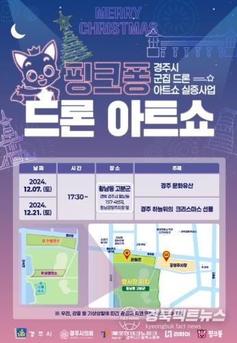 ‘경주의 문화유산과 크리스마스 드론 아트쇼’라는 제목으로 열리는 이번 드론쇼는 이틀 모두 오후 5시 30분부터 시작된다.