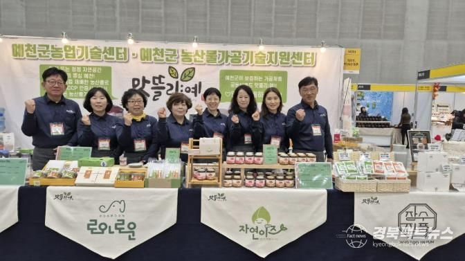 정정호 농업기술센터소장은 “이번 박람회를 통해 예천군 가공제품 공동브랜드 ‘맛뜰리:예’의 브랜드 가치를 널리 알리고, 조합원들의 마케팅 능력 향상과 제품 판매에 큰 도움이 되기를 바란다”라고 말했다.