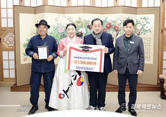 경북팩트뉴스 김영란 기자 | (재)문경시장학회에는 5일 문경시 문화관광해설사회 100만원, 청암문화예술원 120만원, 모전동 신용준씨가 100만원의 장학금을 기탁했다고 밝혔다.