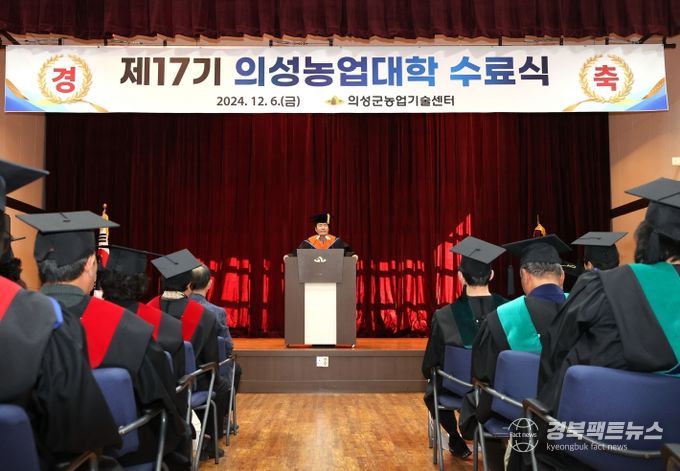 경북팩트뉴스 김영란 기자 | 의성군은 지난 6일 농업기술센터 대강당에서 수료생 및 관계자 90여명이 참석한 가운데 제17기 의성농업대학 수료식을 개최했다.