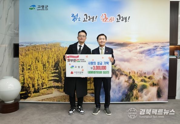경북팩트뉴스 김영란 기자 | 대화환경(주)에서는 12월 9일 고령군청을 방문하여'희망2025나눔캠페인'사랑의 성금 300만원을 기탁했다.