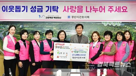 경북팩트뉴스 김영란 기자 | 경산시간호사회는 9일 경산시청을 방문해 어려운 이웃들을 위해 회원들의 뜻을 모아 이웃돕기 성금 100만 원을 전달했다.