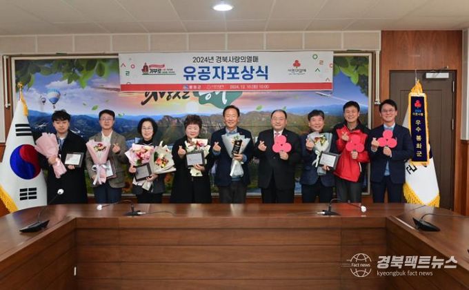 경북팩트뉴스 김영란 기자 | 봉화군은 10일 봉화군청 군수실에서 봉화군수 및 경북사회복지공동모금회 손병일 처장이 참석한 가운데 ‘2024년 경북 사랑의열매 유공자 포상식’을 가졌다.