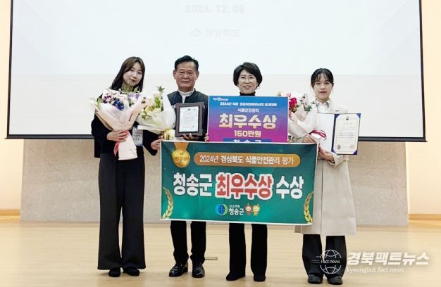 경북팩트뉴스 김영란 기자 | 청송군은 지난 9일 경상북도가 주관한 2024년 식품안전관리 시·군 평가에서 식품안전분야 최우수 기관상을 수상했다.