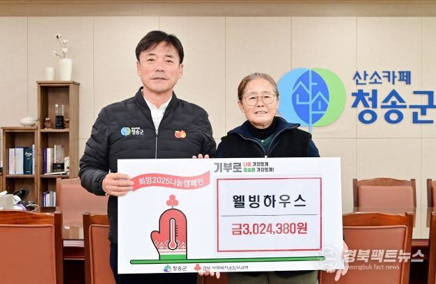 윤경희 청송군수는 “매년 이웃사랑을 실천하는 웰빙하우스 고미영 대표에게 감사드리며, 기부금은 생활이 어려운 이웃들에게 소중히 사용하겠다”고 말했다.