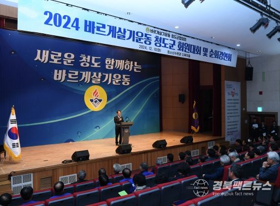 경북팩트뉴스 이경원 기자 | 바르게살기운동 청도군협의회는 10일 청소년수련관 다목적홀에서 회원 200여 명이 참석한 가운데 “2024년 바르게살기운동 청도군 회원대회 및 건전생활실천 순회 강연회”를 개최했다.