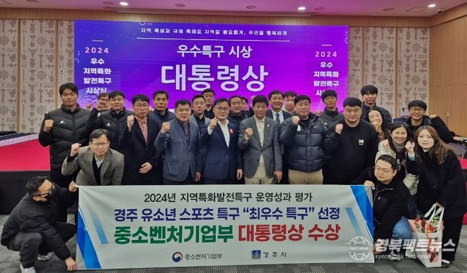 경북팩트뉴스 김영란 기자 | ‘경주 유소년 스포츠 특구’가 중소벤처기업부 주관 ‘2024년 지역특구 평가’에서 전국 1위에 올라 대통령상을 수상하는 영광을 차지했다.