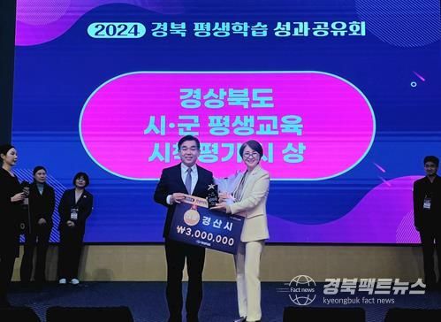 경북팩트뉴스 김영란 기자 | 경산시는 10일 구미시 호텔금오산 그랜드볼룸에서 개최된 ‘2024 경상북도 평생학습 성공유회’에서 '2024년도 평생교육 추진시책 평가'대상을 수상하며, 경북 최고의 평생학습도시로 자리매김했다.