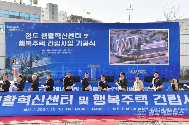 경북팩트뉴스 김영란 기자 | 청도군은 10일 청도읍 고수리 일원(구 청도읍사무소)에서 청도 생활혁신센터 및 행복주택 건립사업 기공식을 갖고 2026년 준공을 목표로 행정·복지·문화의 앵커시설 구축을 통한 새로운 도약의 첫 삽을 떴다.