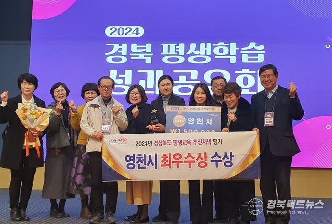 경북팩트뉴스 김영란 기자 | 영천시는 10일 경북도가 22개 시군을 대상으로 실시한 ‘2024년 경상북도 평생교육 추진시책 평가’에서 최우수 기관으로 선정됐다.