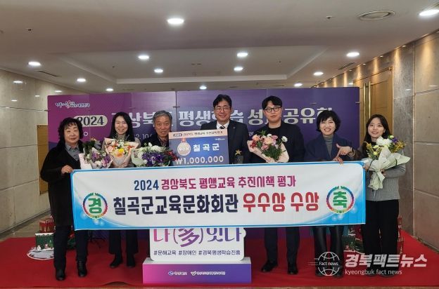 경북팩트뉴스 김영란 기자 | 칠곡군은 2024년 다양한 평생교육의 사업의 성과를 인정받아 『2024년 경상북도 평생교육 추진시책평가』에서 2년 연속 우수상을 수상했다.