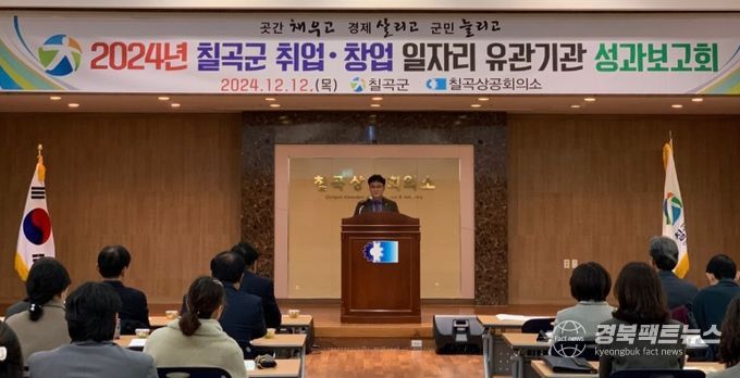 경북팩트뉴스 김영란 기자 | 칠곡군은 지난 12일 칠곡상공회의소 대강당에서 취·창업유관기관, 기업체 등 80여명이 참석한 가운데 2024년 일자리 성과보고회를 가졌다.
