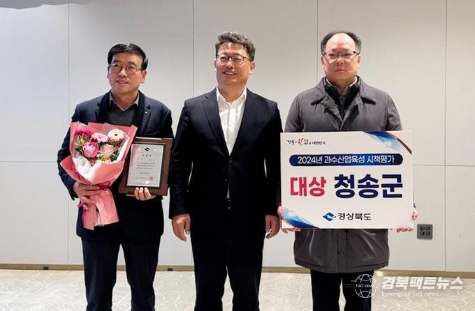 경북팩트뉴스 김영란 기자 | 청송군은 경상북도가 주관하는 ‘2024년 경상북도 과수산업육성시책평가’에서 2023년에 이어 2년 연속 대상을 수상했다고 밝혔다.
