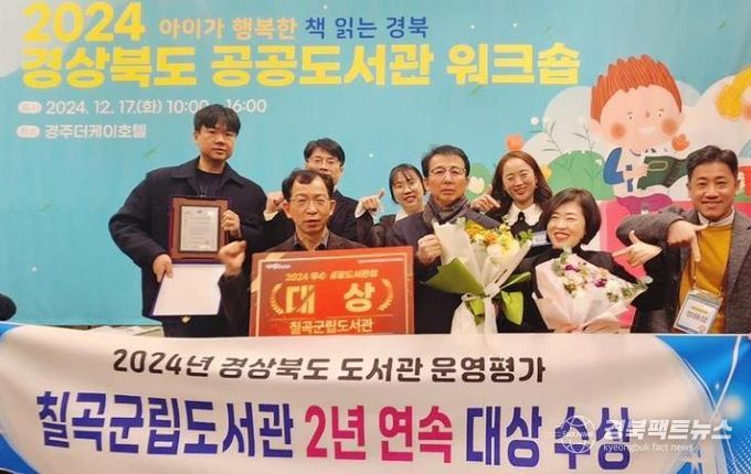경북팩트뉴스 김영란 기자 | 칠곡군립도서관은 경북도서관이 주관하는 ‘2024년 공공도서관 운영 평가’에서 2년 연속 대상’을 수상했다고 밝혔다.