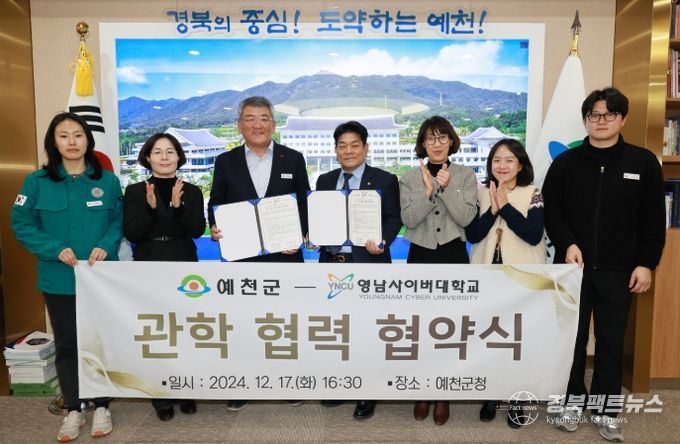 경북팩트뉴스 김영란 기자 | 예천군과 영남사이버대학교는 17일 군수실에서 지역민의 교육 기회 확대와 원격교육 지원을 위한 업무협약을 체결했다.