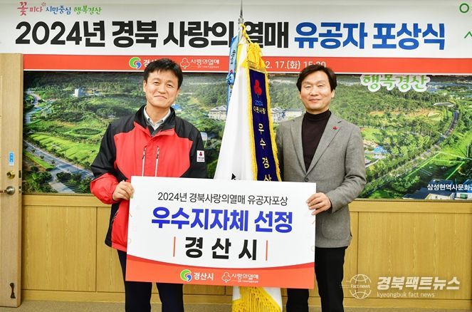 경북팩트뉴스 김영란 기자 | 경산시는 17일 시장실에서 ‘2024 경북 사랑의 열매 유공자 포상식’을 열고 나눔문화 확산과 어려운 이웃 지원에 기여한 공로를 인정받아 우수 지자체로 선정됐다고 밝혔다.