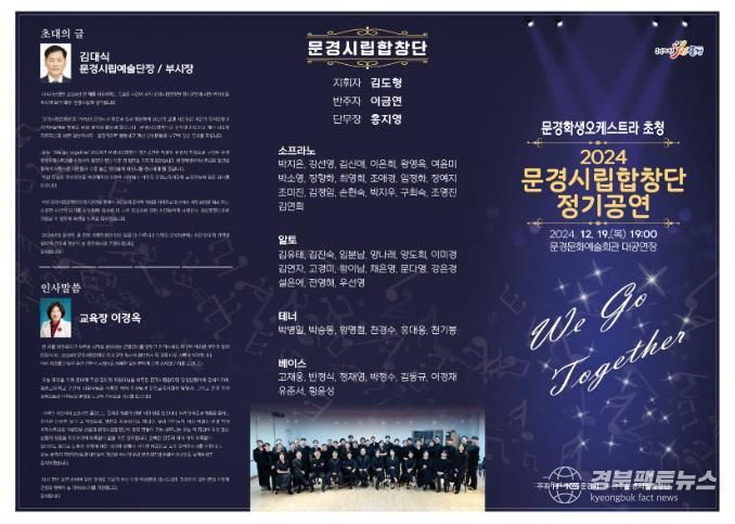 경북팩트뉴스 이경원 기자 | 문경시가 주최하는 2024 문경시립합창단 정기공연이 오는 12월 19일 목요일 오후 7시 문경문화예술회관 대공연장에서 펼쳐진다.