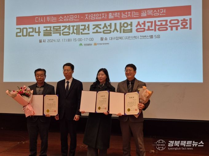 경북팩트뉴스 김영란 기자 | 지난 17일‘2024년 대구광역시 골목경제권 조성사업 성과공유회’가 개최된 가운데 대구광역시장 골목상권 활성화 유공 표창에 박원윤(군위군 의흥면 읍내리) 군위군 의흥상가번영회장이 수상의 영예를 안았다.