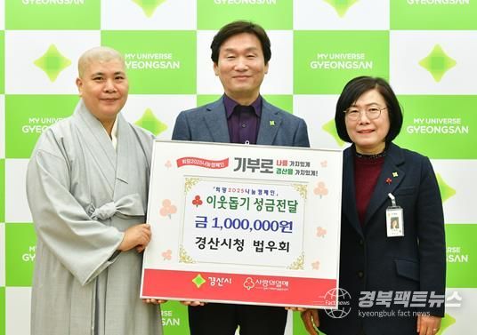 조현일 경산시장은 “어려운 이웃을 위해 나눔을 실천해 주신 안병숙 회장님과 법우회 회원분들께 감사드리며, 기탁해 주신 성금은 지역 내 도움이 필요한 분들을 돕는 데 소중히 사용하겠다”고 화답했다.
