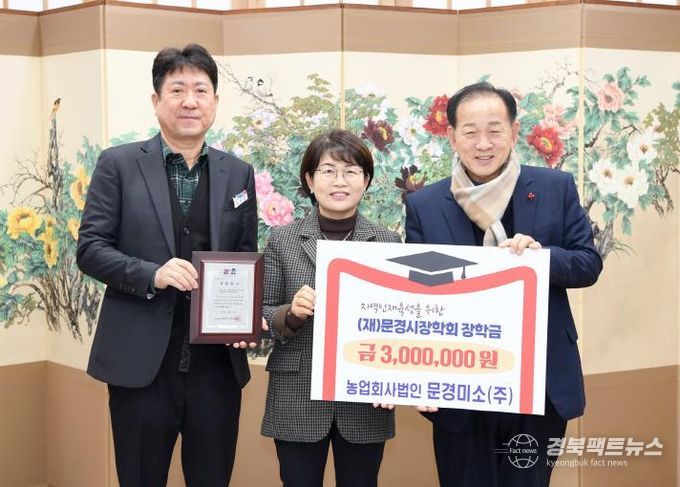 경북팩트뉴스 김영란 기자 | (재)문경시장학회는 17일 문경미소㈜가 지역인재 육성을 위해 300만원의 장학금을 문경시장학회에 기탁했다고 밝혔다.