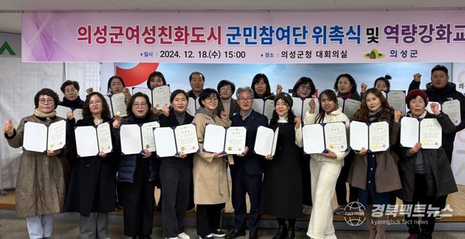 경북팩트뉴스 김영란 기자 | 의성군은 지난 18일 군청 대회의실에서 여성친화도시 군민참여단 23명이 참석한 가운데 위촉식 및 역량강화교육을 추진했다.