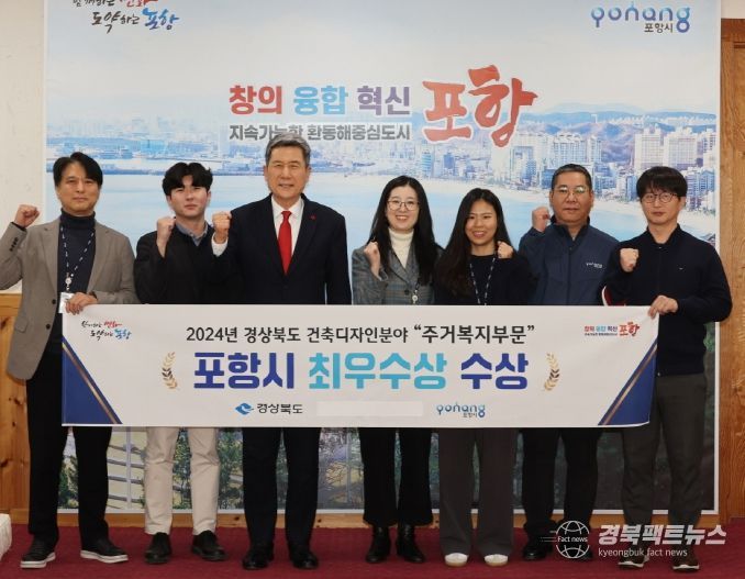 경북팩트뉴스 김영란 기자 | 포항시는 ‘경상북도 건축디자인분야’ 유공 표창 시상식에서 주거복지사업의 발전에 적극 기여한 공로를 인정받아 최우수상을 수상했다고 19일 밝혔다.