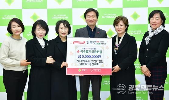 경북팩트뉴스 김영란 기자 | (사)경상북도 여성기업인협의회 경산지회는 19일 경산시청을 방문해 이웃돕기 성금과 장학금으로 각각 500만 원씩, 총 1,000만 원을 기탁했다.