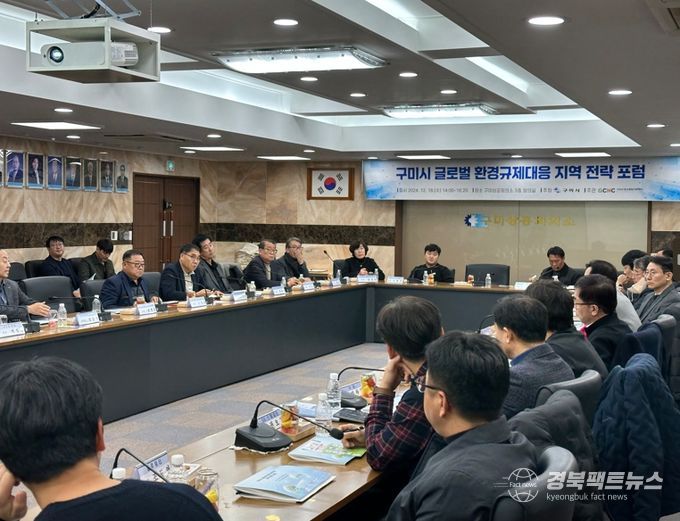 경북팩트뉴스 김영란 기자 | 구미시는 지난 18일 상공회의소에서 환경기술 관련 단체 및 중소기업 관계자 50여 명이 참석한 가운데 ‘글로벌 환경규제대응 지역전략 정책포럼’을 개최했다.