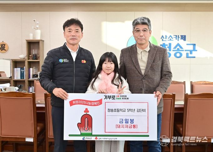 윤경희 청송군수는 “학생들이 스스로 나눔 활동에 참여해 기부문화를 발전시켜줘 뿌듯하다.”며, “이 뜻깊은 나눔에 동참해주신 학부모님들께도 감사드리며, 나눔 문화가 더욱 널리 퍼질 수 있도록 노력하겠다.”라고 말했다.